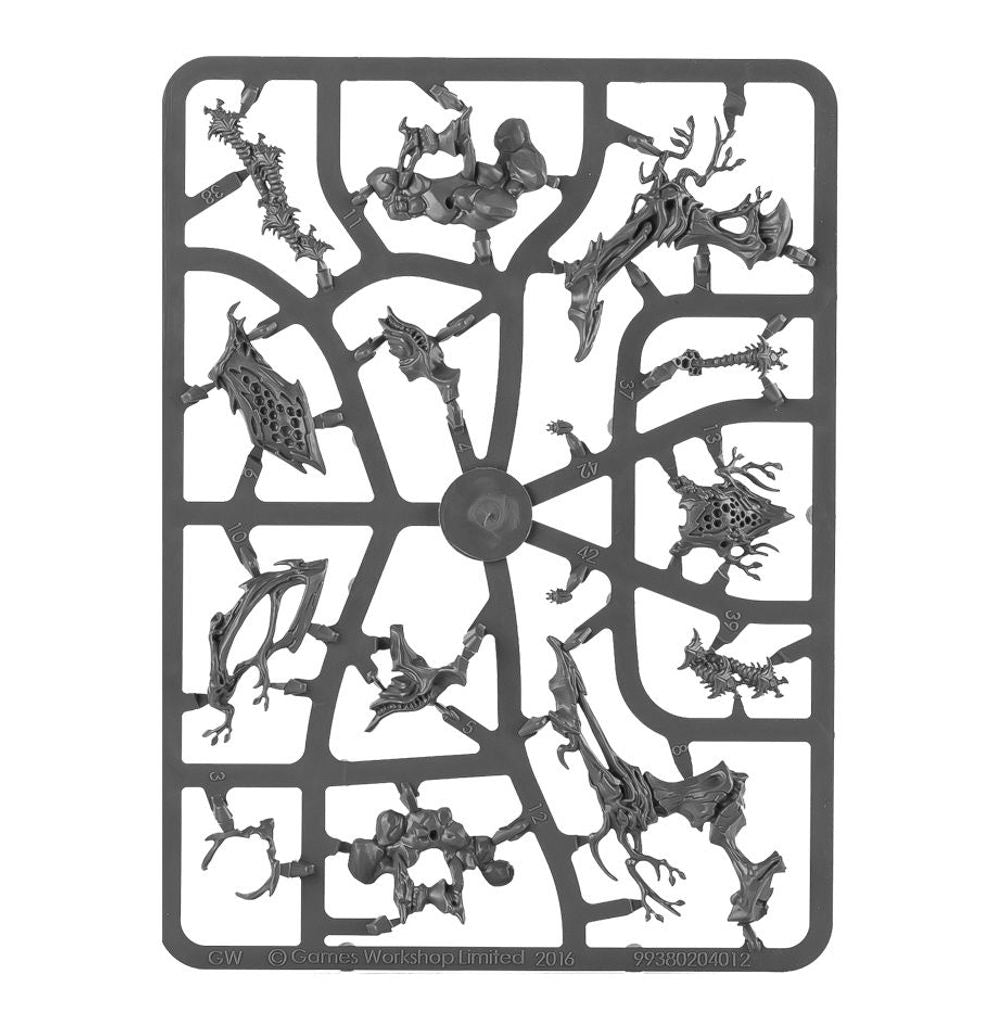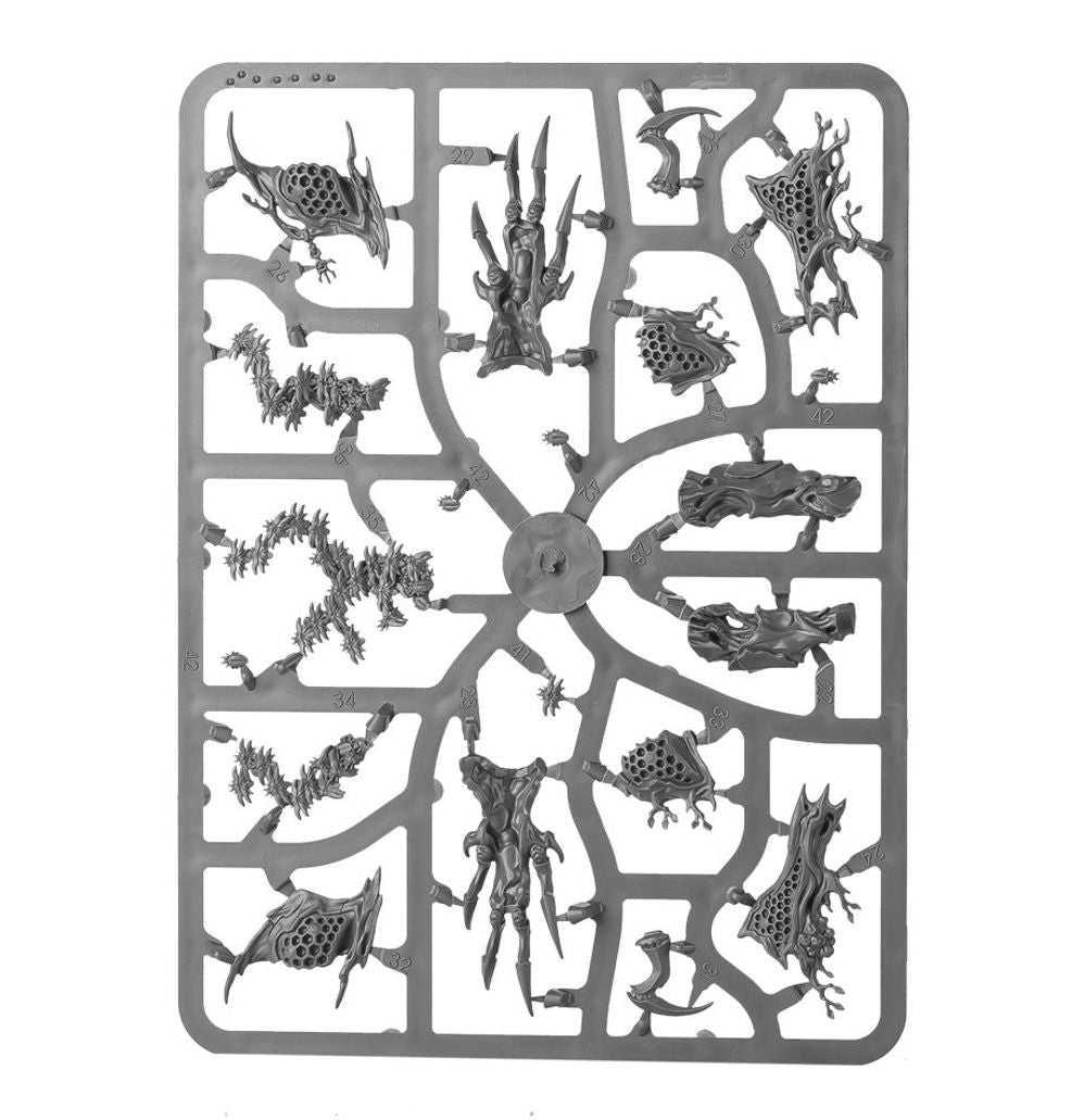 This multi-part plastic kit contains all the parts necessary to build Drycha Hamadreth. Her body is the host for either a colony of Flitterfuries or a swarm of Squirmlings, and she is armed with slashing talons and thorned slendervines. She comes supplied with 12 spites and one Citadel 105x70mm Oval base.